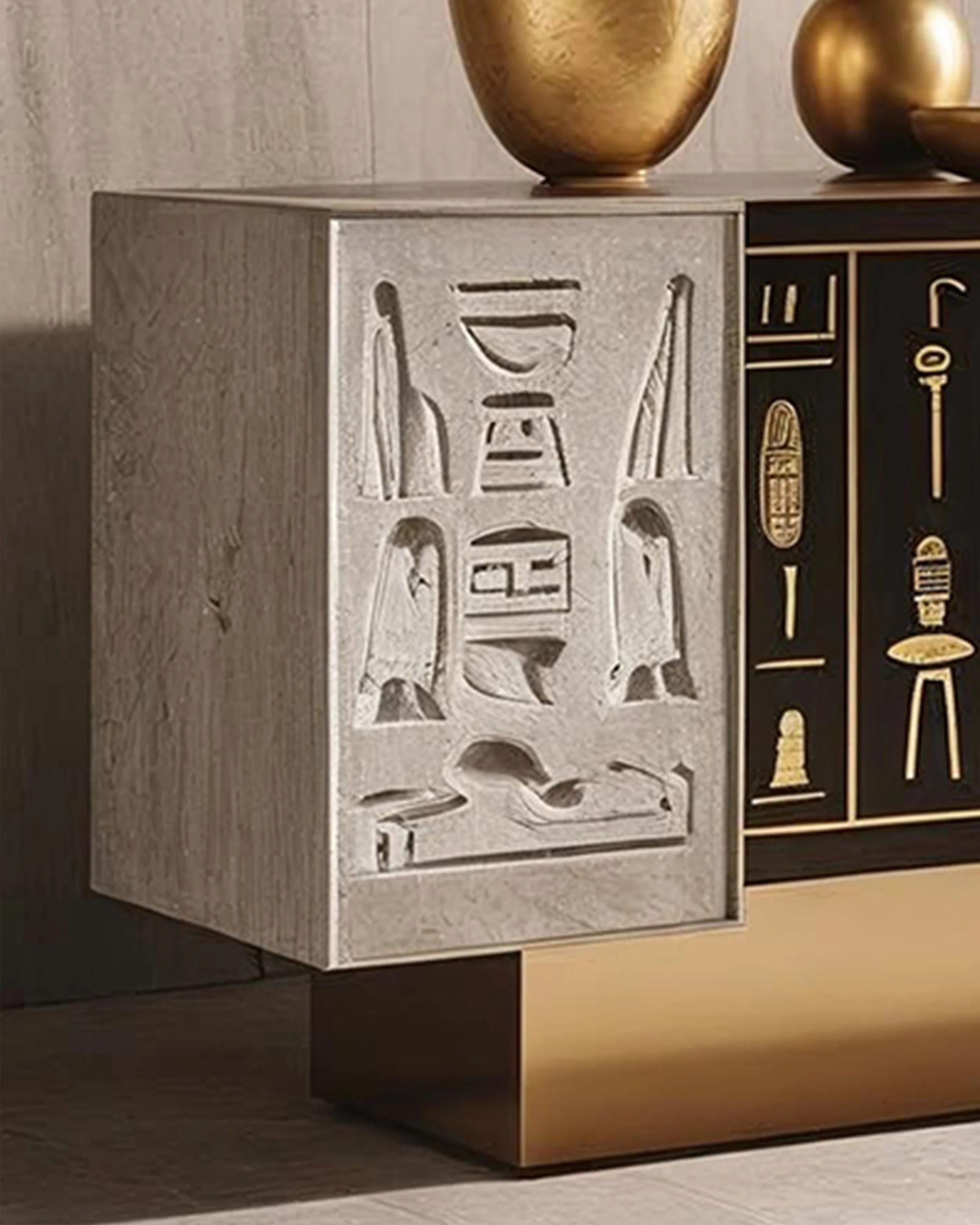 Placed in a modern home, NEPHRA transforms interiors into sanctuaries of culture and elegance. Functional in storage yet monumental in presence, it bridges practicality and artistry — a true statement of immortal beauty.